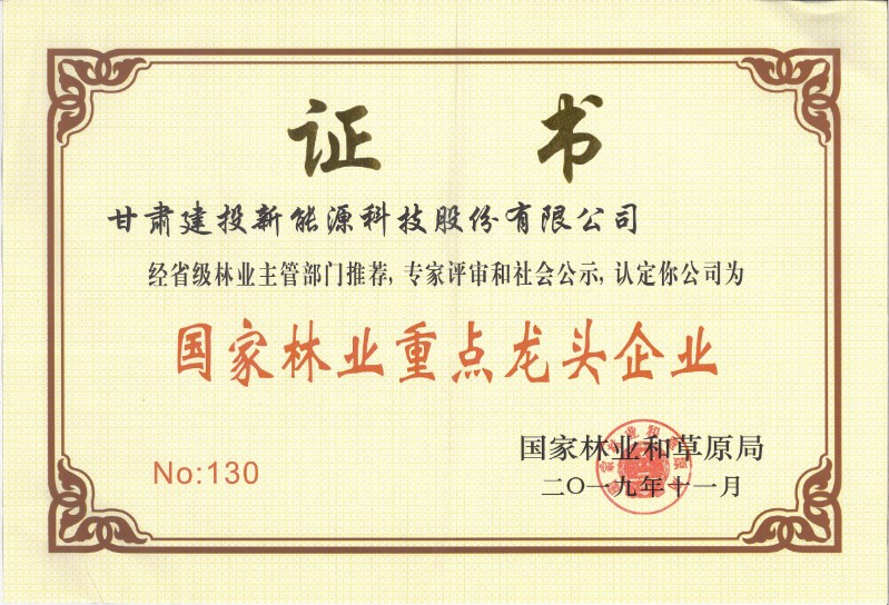 甘肅建投新能源公司喜獲第四屆“中國(guó)林業(yè)產(chǎn)業(yè)創(chuàng)新獎(jiǎng)”及“國(guó)家林業(yè)重點(diǎn)龍頭企業(yè)”稱號(hào)