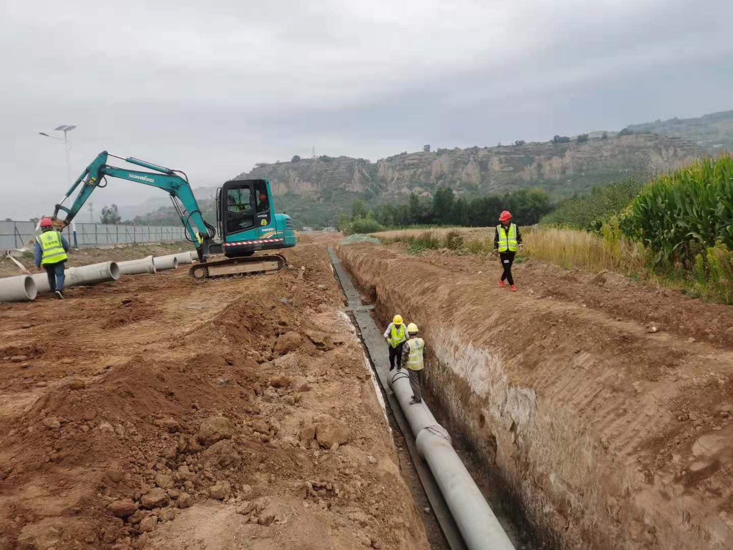 截止目前,工程建設(shè)正在緊鑼密鼓的進(jìn)行,臨夏項(xiàng)目部已配備各類管理人員20余人,施工作業(yè)人員60余人、機(jī)械操作人員20余人、各類施工車輛20余臺(tái);雨水管道和檢查井修筑工作正在按照施工節(jié)點(diǎn)有序推進(jìn)。全線工程:橋梁樁基已完成40%,道路清表已完成5萬方,土方挖方3000方。污水管道K0+800-K1+200、k1+555-k1+980、k2+005-k3+208、共計(jì)2025米,污水井完成W42-W65共24個(gè);雨水管道完成k1+830-k1+980、k2+005-k2+550、k2+600-k3+200,共計(jì)1295米。雨水井共完成33個(gè)。全線道路計(jì)劃完成時(shí)間2022年9月30日。