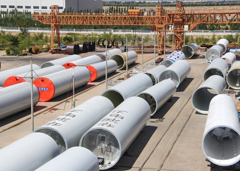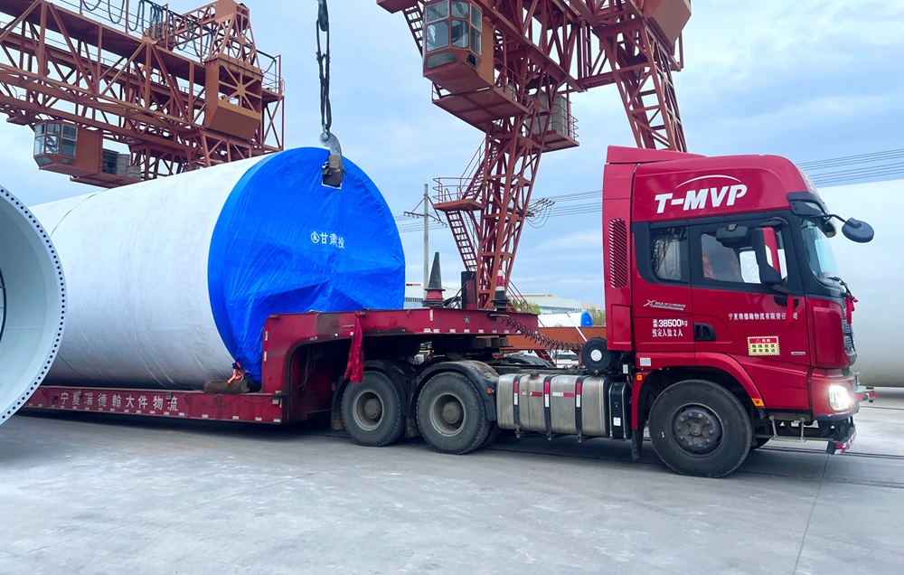 金風科技甘肅張掖臨澤30萬千瓦風電項目塔筒裝車