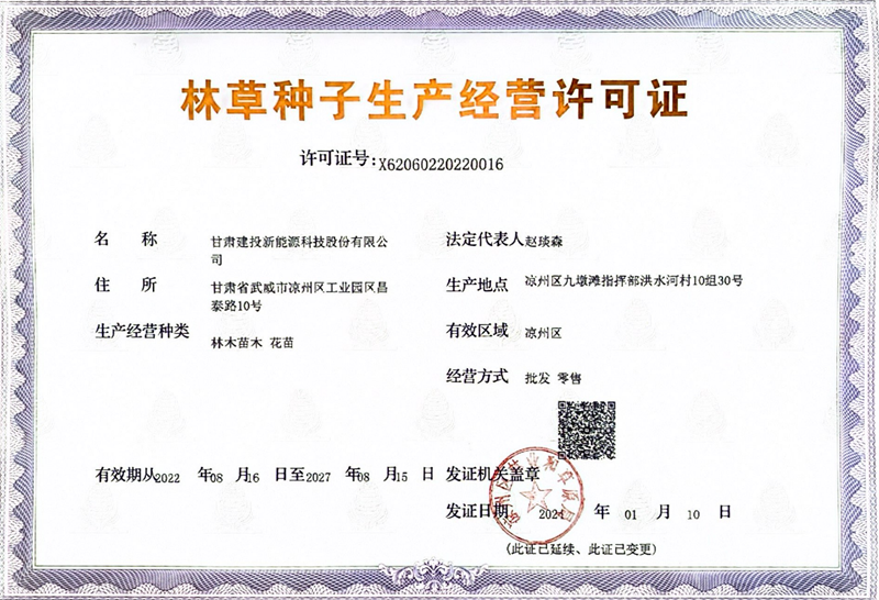 新能源林草種子生產(chǎn)經(jīng)營許可證