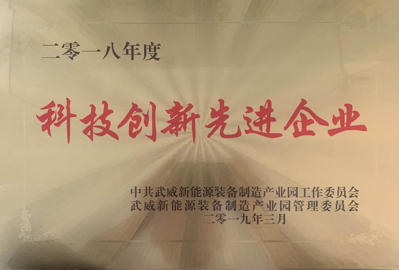 2018年度武威市新能源裝備產(chǎn)業(yè)園科技創(chuàng)新先進企業(yè)
