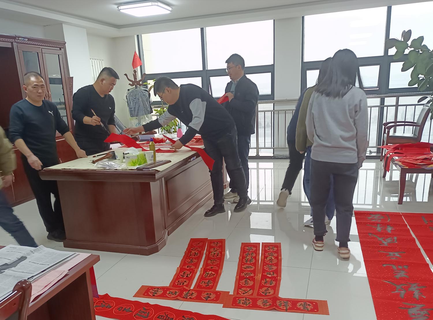 為深入學(xué)習(xí)宣傳貫徹黨的二十大精神,大力弘揚中華優(yōu)秀傳統(tǒng)文化,豐富職工群眾精神文化生活,營造隆重喜慶、歡樂祥和的節(jié)日氛圍。根據(jù)中華全國總工會的《關(guān)于在元旦春節(jié)期間開展“送萬?!?、“進萬家”書法公益活動的通知》要求,1月11日下午,新能源公司組織開展送春聯(lián)贈福字書法志愿服務(wù)活動,將節(jié)日的祝福與年味提前送到職工群眾身邊。