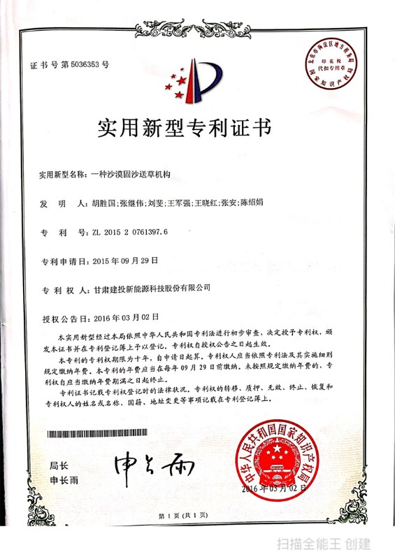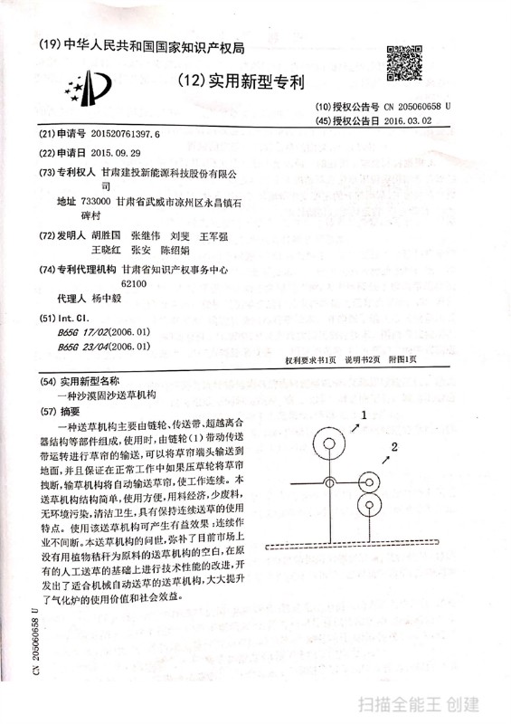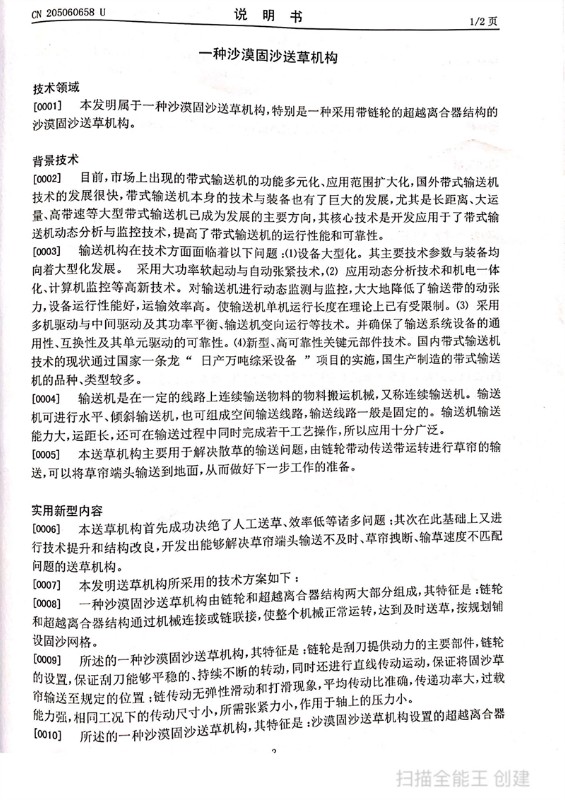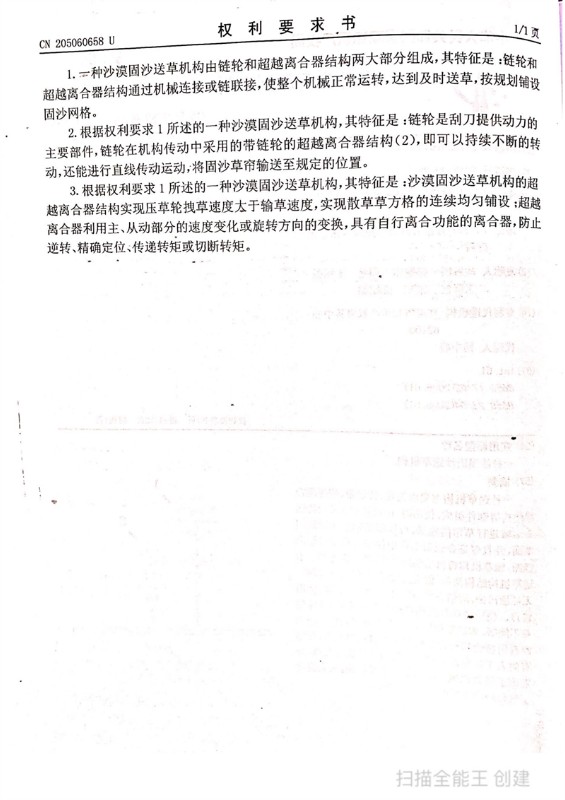 【實用新型專利】一種沙漠固沙送草機構(gòu)