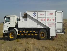 甘肅建投研發(fā)的“多功能立體固沙機(jī)”,是世界首臺(tái)機(jī)械化治沙機(jī),處于國(guó)際領(lǐng)先水平,擁有11項(xiàng)實(shí)用新型技術(shù)及發(fā)明專利,具有自主知識(shí)產(chǎn)權(quán)。立體固沙車將稻草在沙漠表面鋪設(shè)成1×1m、2×2m等不同規(guī)格的草方格,草方格規(guī)格可根據(jù)沙漠地形、風(fēng)向進(jìn)行靈活調(diào)整。麥草插入沙地,增加沙漠表面的粗糙度,消減風(fēng)力,阻止流沙移動(dòng),截留雨水,防風(fēng)固沙作用非常明顯,比人工固沙的質(zhì)量要高、效果更好。